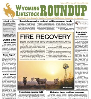 March 28, 2026 Pages 1-20 Welcome to the online edition of the Wyoming Livestock Roundup. Please click the links below to view the PDF version of the paper. If you