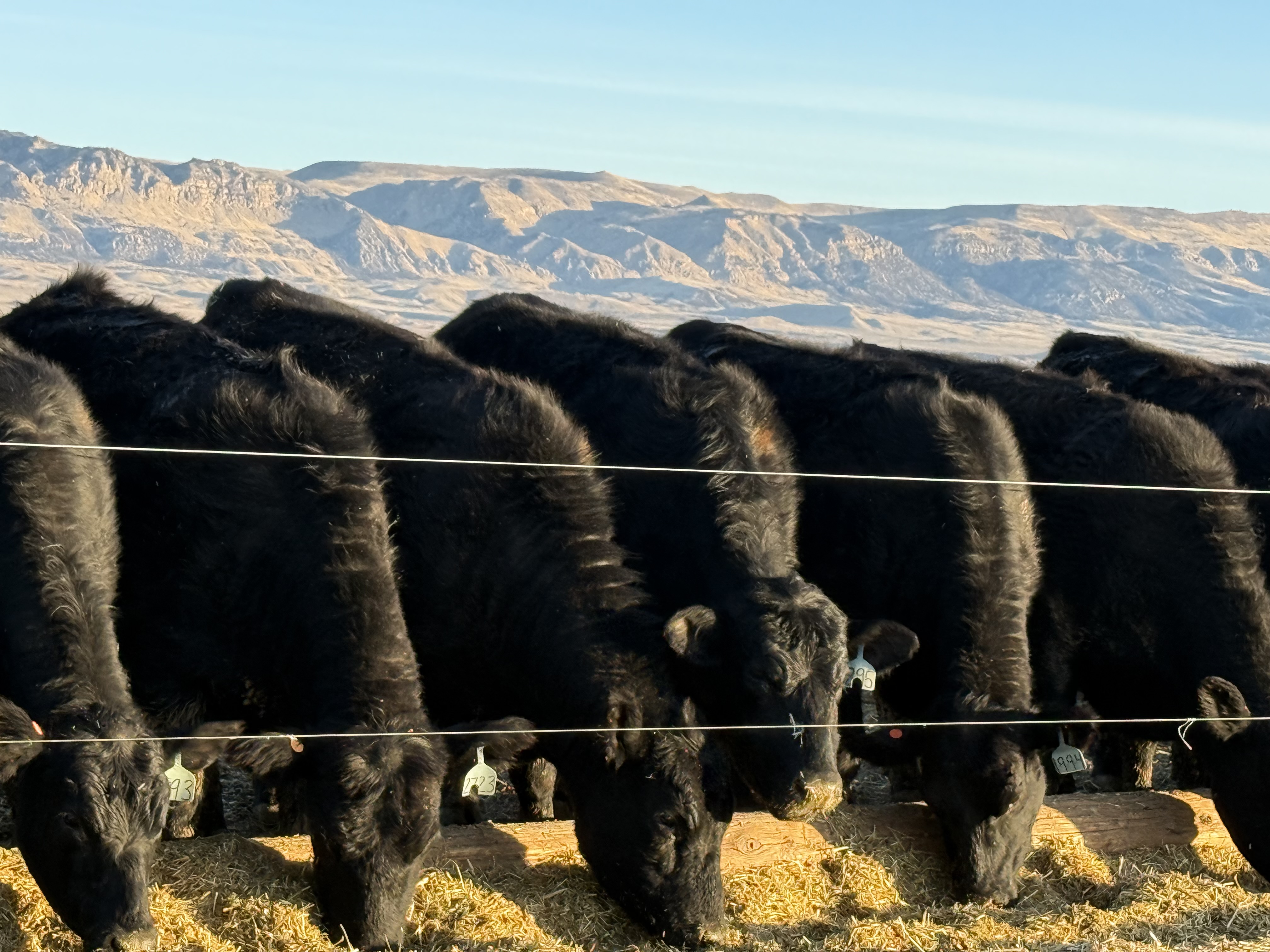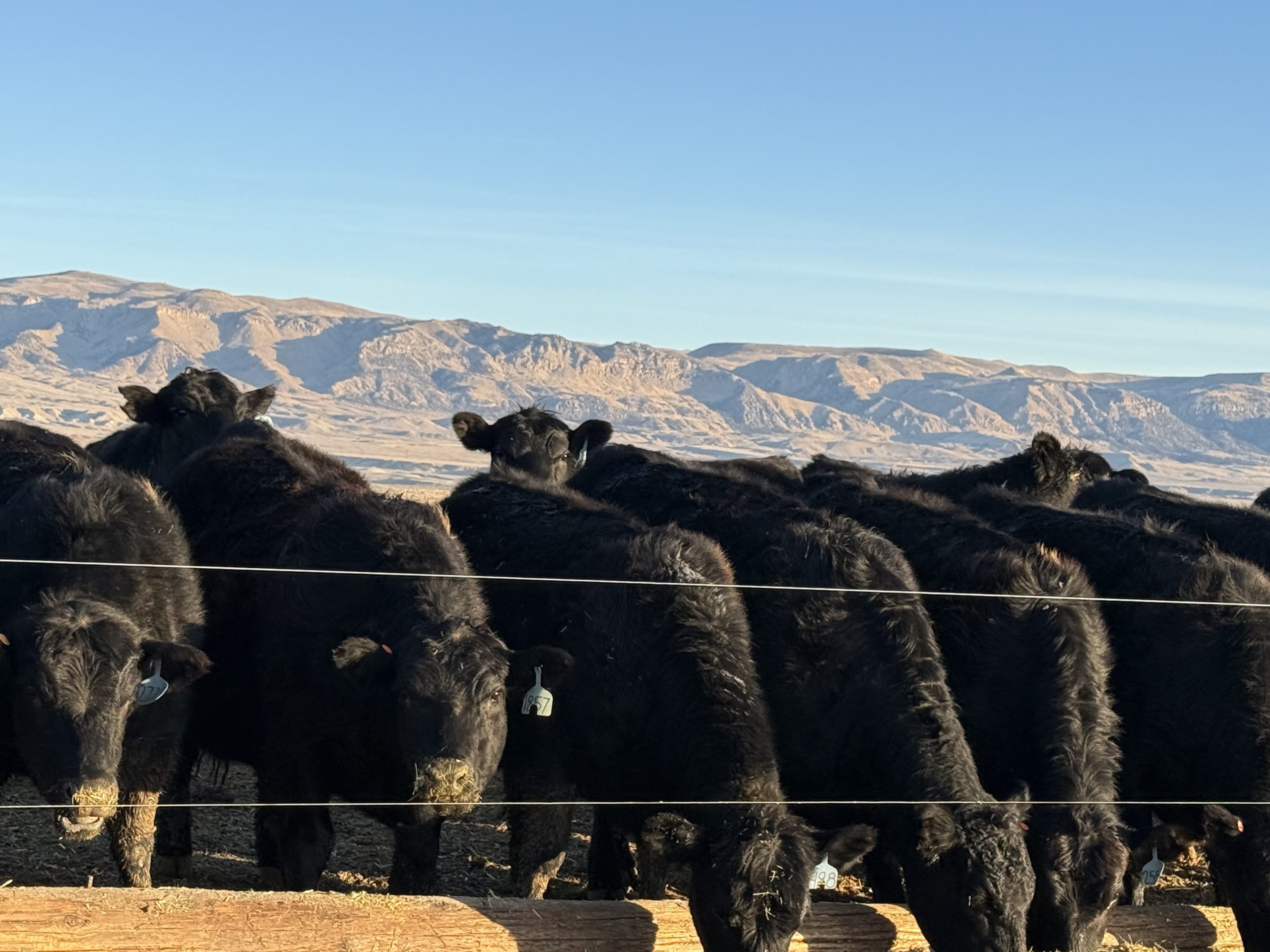 NICE SET OF 200 BLACK BRED HEIFERS, weighing 1,050 lbs. Bred to LBW Black Angus bulls from Topp Angus. Ultrasound tested to calve in 30 days starting March 5. Recently poured and given one dose of 4KC. $4,600 . Call 307-709-2375.